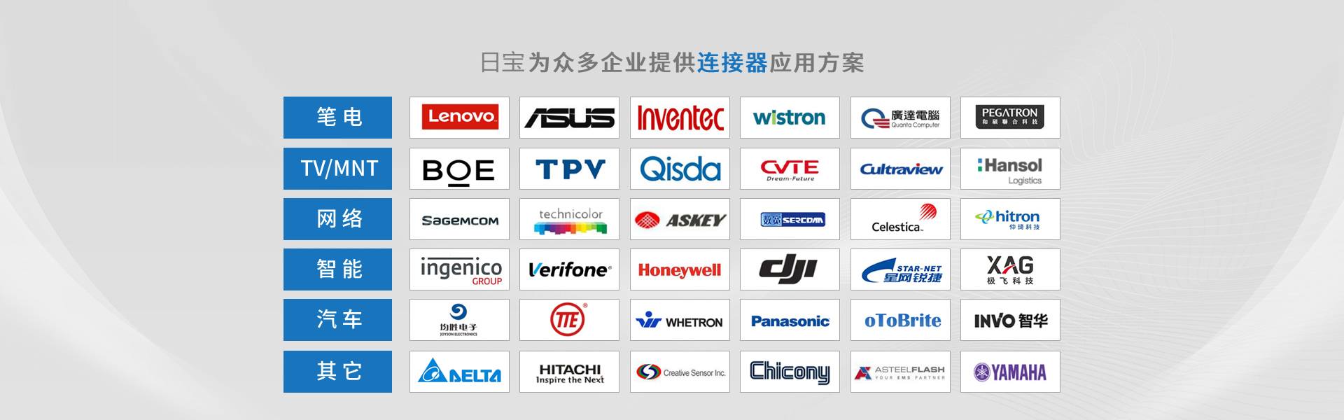 日寶電子注重長(zhǎng)遠(yuǎn)發(fā)展,先后取得ISO9001/14001質(zhì)量與環(huán)境管理體系、IATF16949汽車質(zhì)量管理體系、ISO13485醫(yī)療器械質(zhì)量管理體系、UL,GB/T29490知識(shí)產(chǎn)權(quán)管理體系等認(rèn)證, 并加入HDMI、USB等協(xié)會(huì)。